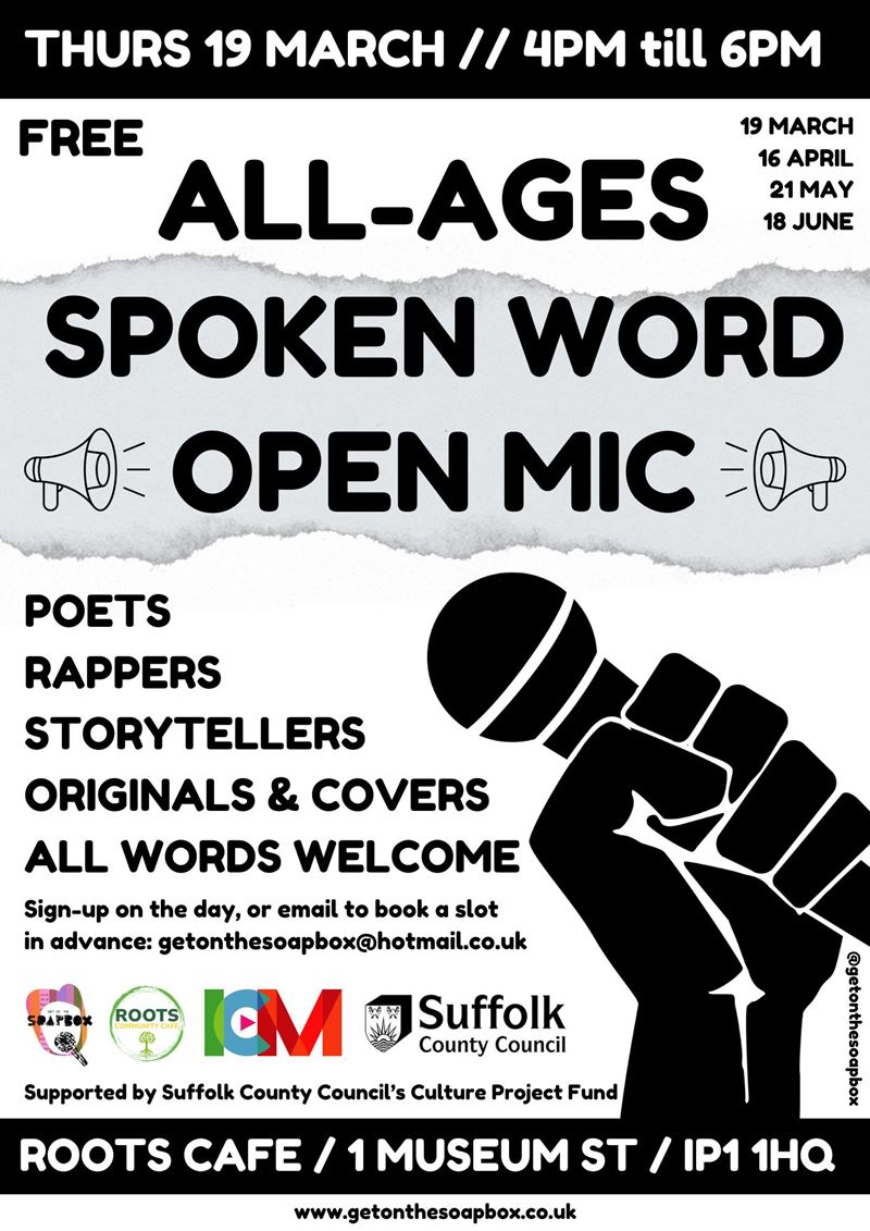 We're delighted to announce the launch of a new regular, monthly, all-ages spoken word open mic, in Ipswich.